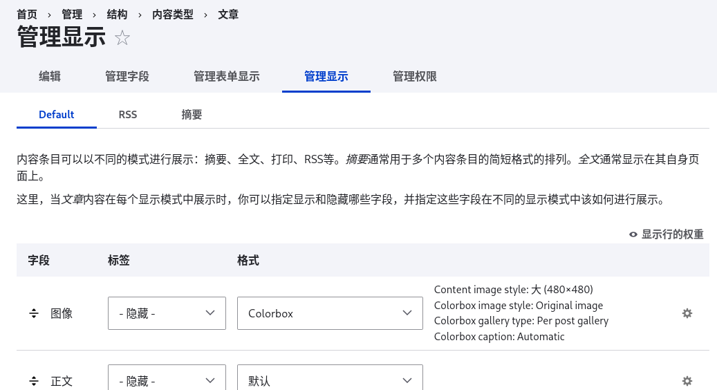 首页> 管理> 结构> 内容类型> 文章> 管理显示> 字段> 图像> Colorbox